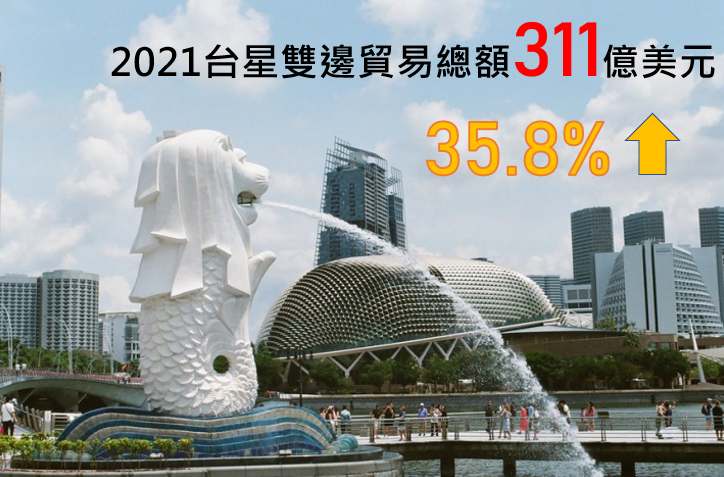 駐新加坡代表梁國新表示,2020年台星雙邊貿易總額達280億美元(約新台幣7753億元),占台灣與新南向國家貿易總額的25.6%。今年1月至10月,台星雙邊貿易額為311億美元,已超過2020全年貿易額,比去年同期成長35.8%,在新南向國家貿易總額中的占比維持約四分之一。在投資方面,截至今年9月,新加坡對台投資額累計91億美元,台灣歷年在新加坡投資總額達186億美元。不論在貿易及投資方面,新加坡都是台灣在新南向國家中最密切的夥伴。