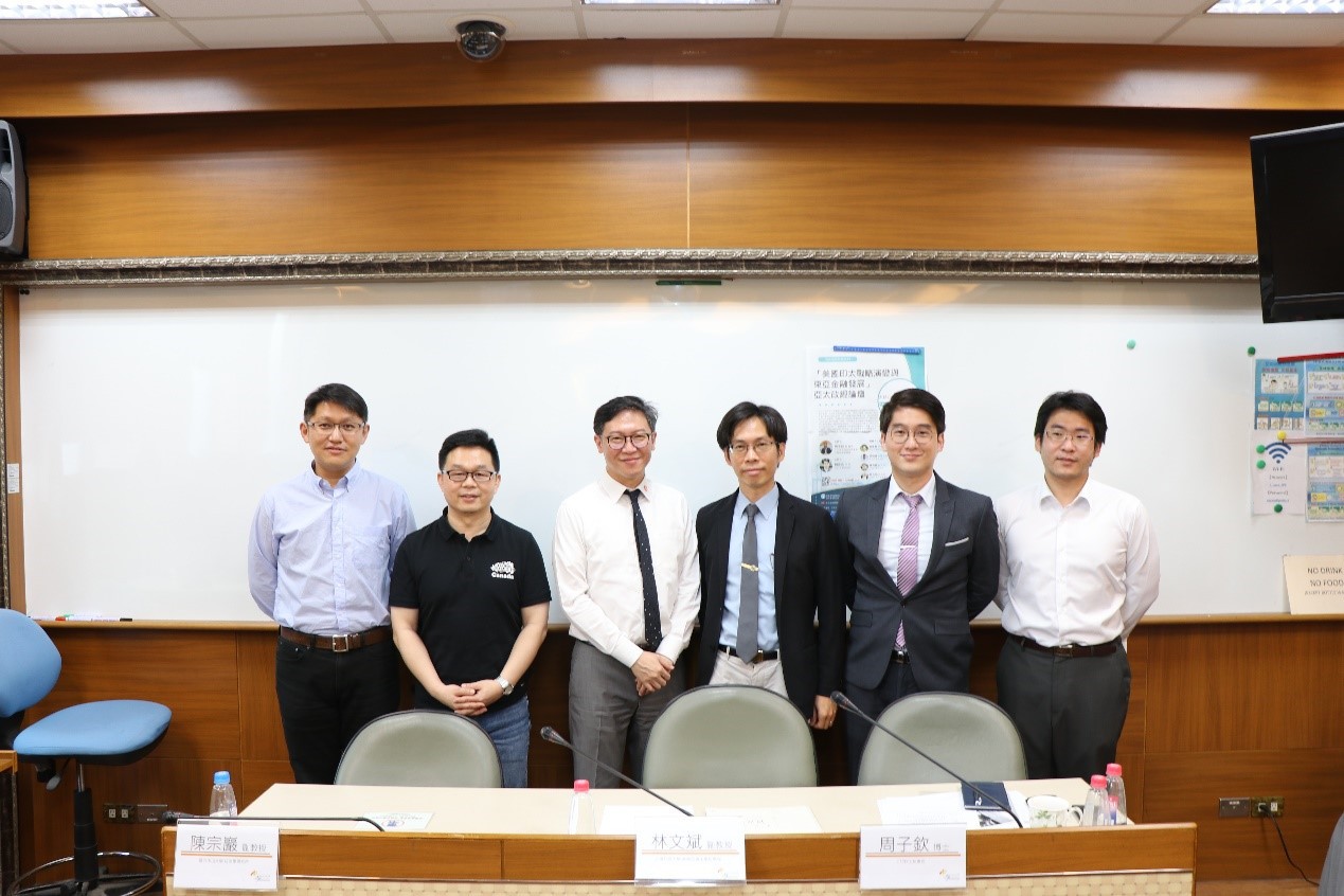 左起國立中山大學政治所陳宗巖副教授、文藻外語大學東南亞學系林文斌副教授、CTPECC周子欽秘書長、中山大學政治所劉正山所長、中山大學中國與亞太區域研究所張珈健助理教授、中山大學政治所黃韋豪助理教授