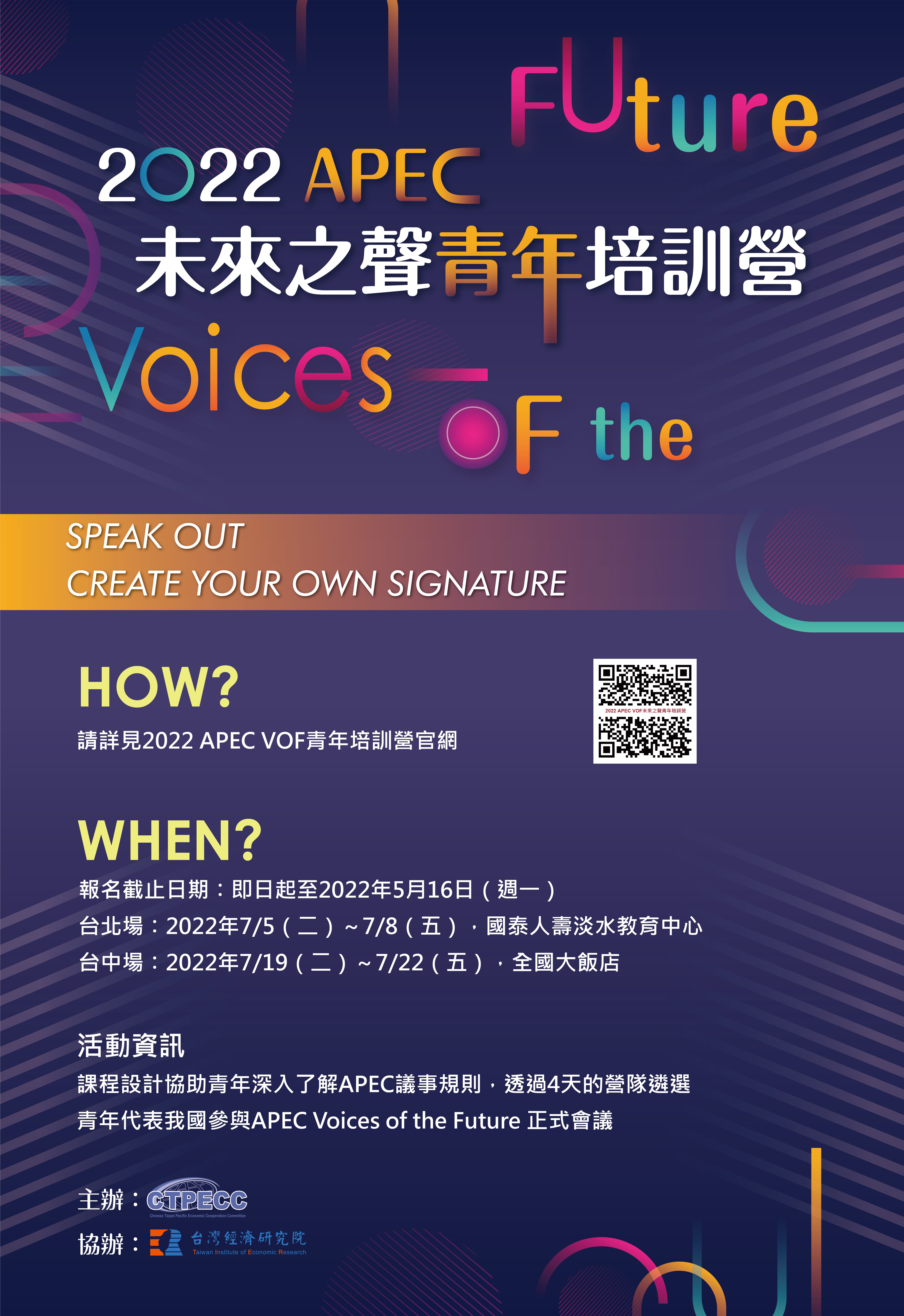 2022年APEC未來之聲青年培訓營將辦理兩場: